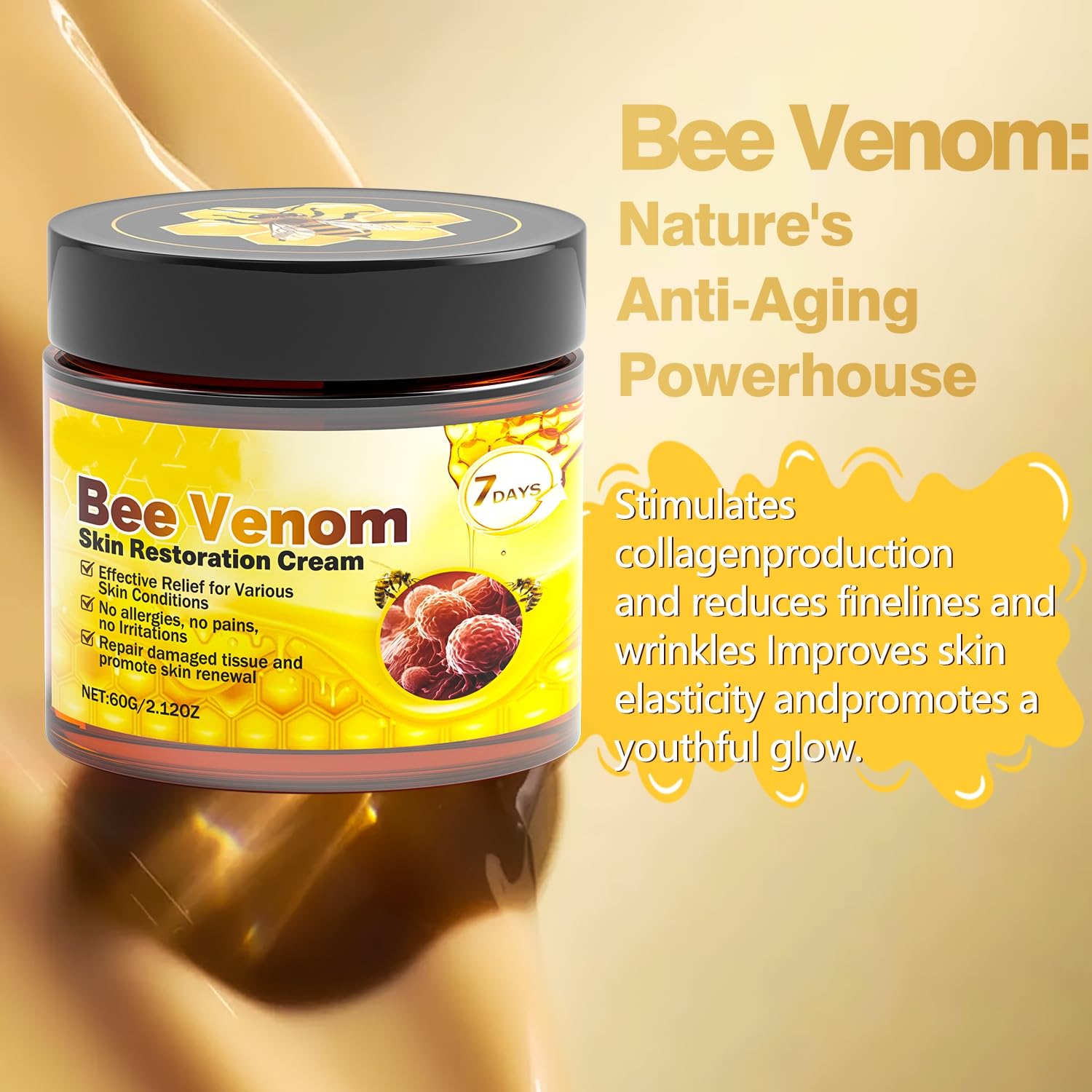 ⭐ This cream uses purified bee venom to naturally stimulate the skin’s rejuvenation process, helping boost vitality and youthfulness.